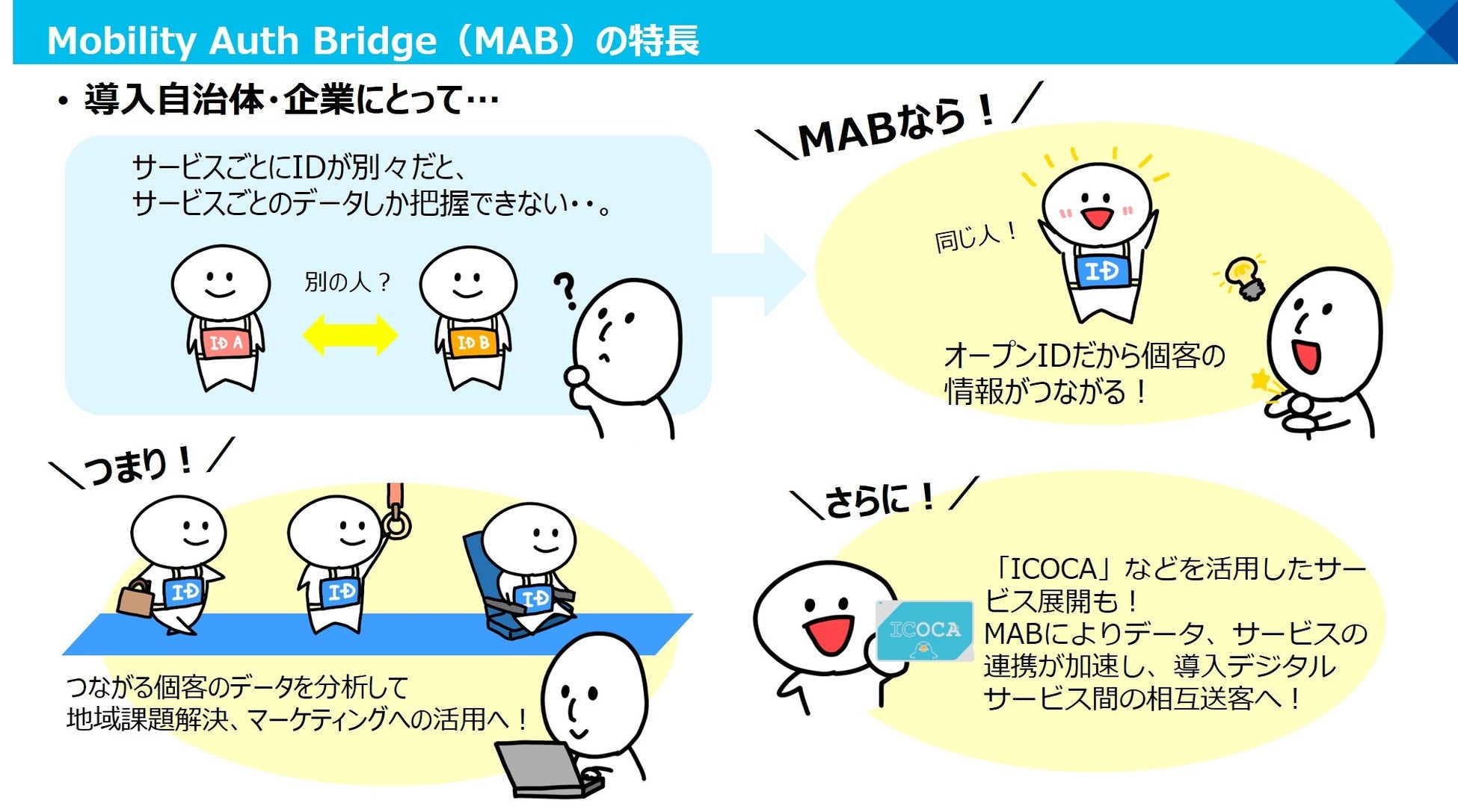 MABは、大阪・関西万博に向け、関西・鉄道7社が連携し、関西地域におけるシームレスな移動手段の提供のため2023年夏にサービスの提供開始を予定している「関西MaaSアプリ(仮称)」の会員基盤サービスとして採用されます。
