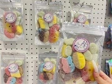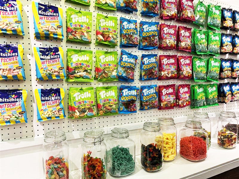 店内には、グミやキャンディなど色とりどりのお菓子が並び、見ているだけでもワクワクするポップな空間が広がります。
