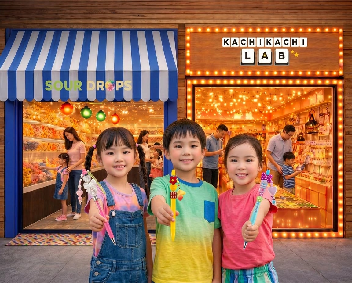 【3/7(土)OPEN】カラフルなお菓子が並ぶ『サワードロップス』と、キーボードアクセやミラー、韓国で話題のカスタムボールペンなどを自由にカスタムできる体験型ショップ『カチカチラボ』