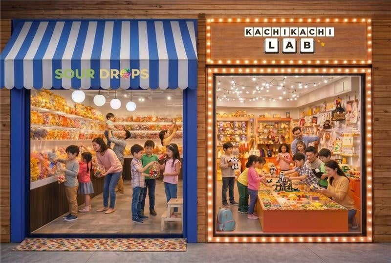 カラフルなお菓子が並ぶ「SOUR DROPS」と、オリジナル雑貨を作れる体験型ショップ「KACHI KACHI LAB」が、2026年3月7日(土)にオープン。
