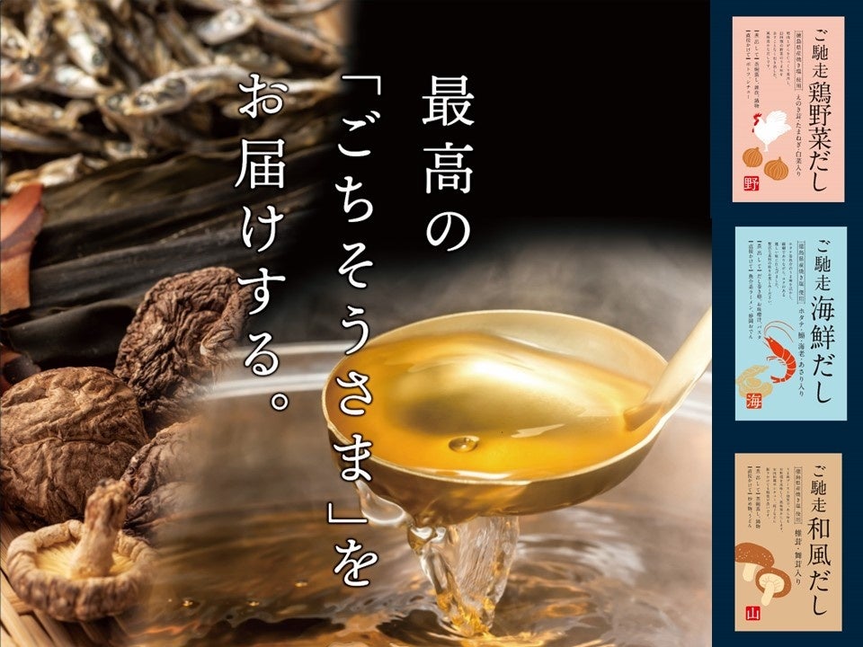 和風、海鮮、鶏野菜の全3種類があり、炊き込みご飯やスープ、パスタなど様々なシチュエーションでお楽しみいただけます。