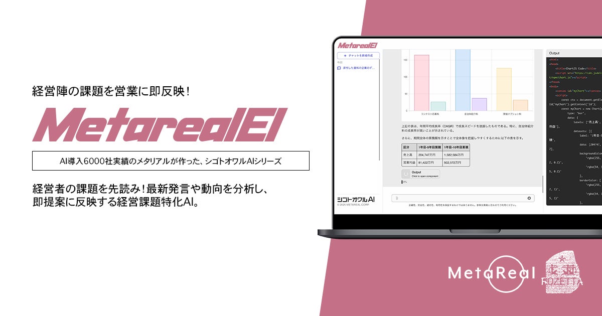 【メタリアル・グループ】顧客企業経営陣の課題予測分析AIエージェント「Metareal エグゼクティブインサイト(Metareal EI)」8/26提供開始