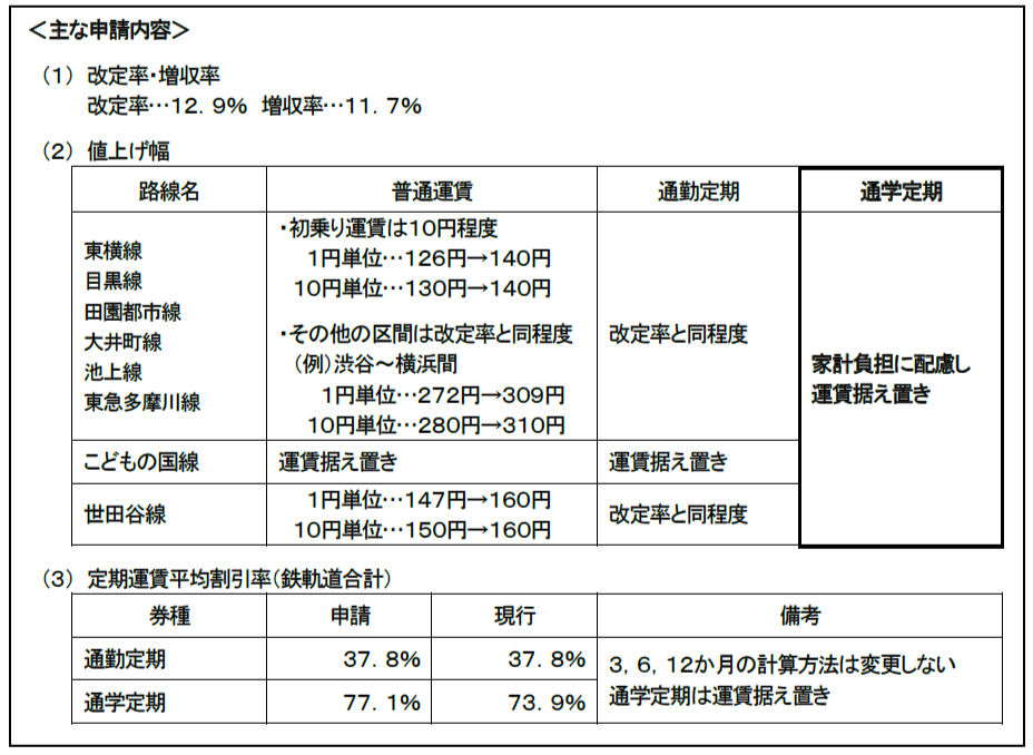 当社は本日、2023年3月の実施に向けて、国土交通大臣宛に鉄軌道旅客運賃の変更認可申請を行いました。これまで安全性・安定性の確保を目的に「3つの100%」として、ホームドア・センサー付固定式ホーム柵、車内防犯カメラ、踏切障害物検知装置を完備するなど、業界水準を大きく上回る規模の設備投資を継続的に実施してきました。一方、設備維持に要する費用は年々増加し、加えて、新型コロナウイルス感染症拡大によるテレワークなどの新しい生活様式の定着により、とくに定期利用者が同業他社と比較しても大きく減少していることから、今後もコロナ前の需要水準には戻らないと想定され、厳しい経営状況にあります。