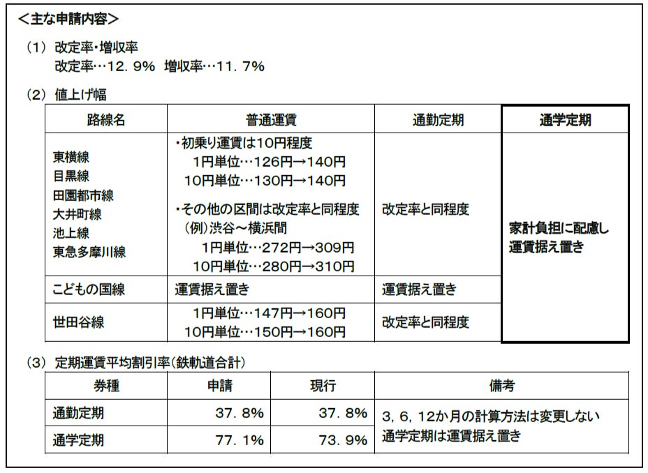 今回の運賃改定は、このような経営環境下においても、安全性・安定性を支える高水準な鉄道インフラを適切に維持・更新し、将来世代に負担を先送りすることなく鉄道事業を継続するとともに、社会に必要とされる価値を今後も提供していくため、2005年の運賃改定以来17年ぶり(消費税率変更によるものを除く)に申請するものです。主な申請内容は以下のとおりです。