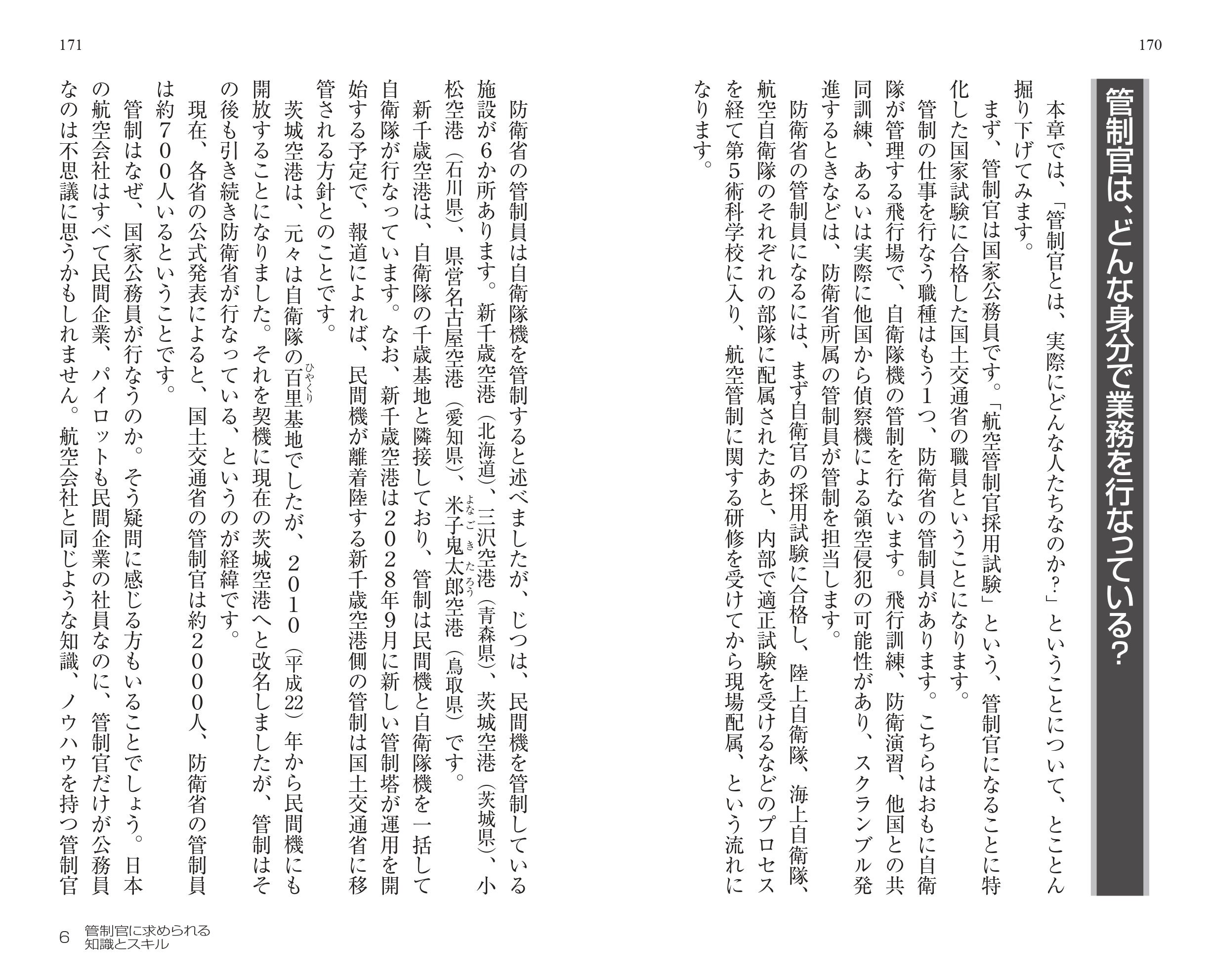 無線によるやりとりがアナログであることや、AI(人工知能)管制の必要性を否定するつもりはありませんが、まだ当分のあいだは、人間が管制を担う時代が続くと想定されます。状況が緊迫するほど、人は声でのやりとりを求めるものです。本書では、個人の責任、個別事象に意識が引っ張られることなく、真に意味のある安全対策の検討につながる一助となるよう、一般の方々にはあまり知られていない「航空管制の世界」をお伝えします。