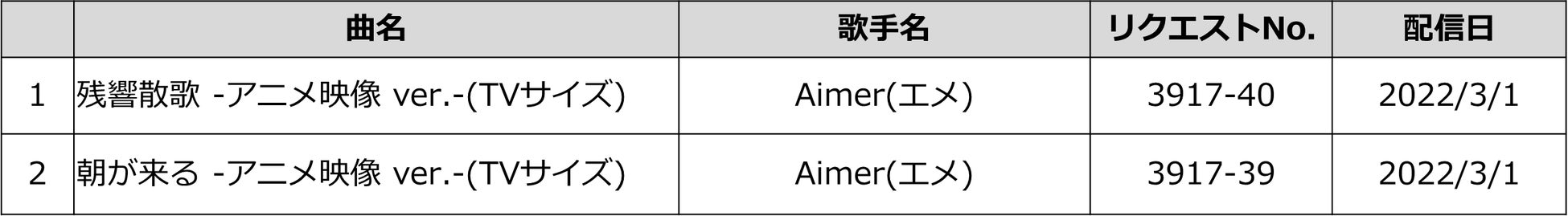 株式会社第一興商は、通信カラオケDAMに、Aimer(エメ)が歌う“テレビアニメ「鬼滅の刃」 遊郭編”のオープ