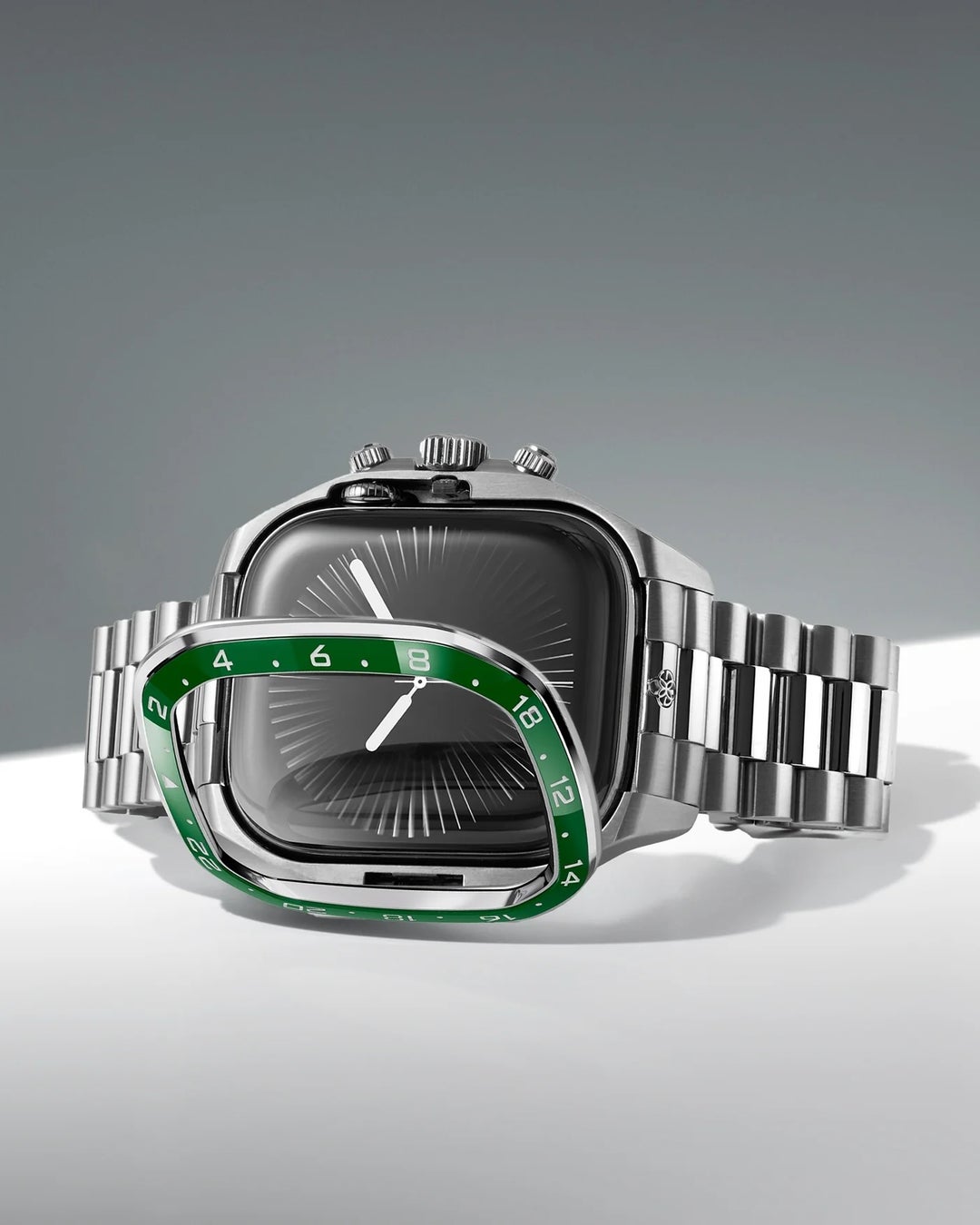 そして「CROWN CLASSIC SPORT EDITION」は、シルバーカラーのケースに、リッチレッド、ディープブルー、クラシックグリーンのセラミックベゼルを組み合わせた3つのモデルを展開。洗練された色彩とダイナミックなデザインが融合し、どんなシーンにも対応するアイコニックなアクセサリーとしてApple Watchを昇華させます。