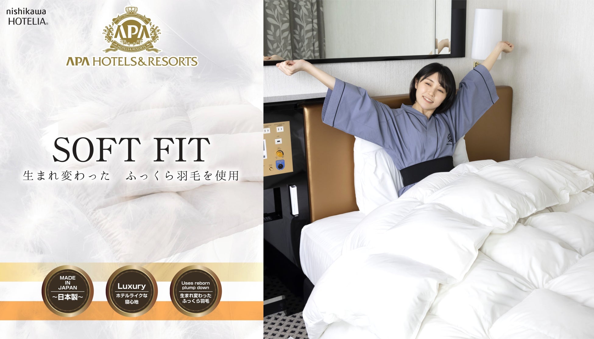 「nishikawa」と共同開発 アパホテルの羽毛ふとん「SOFT FIT」販売キャンペーンを開始
