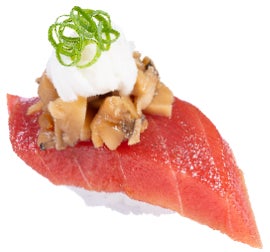『本鮪上赤身の漬け~キノコと長芋の創作寿司~』一貫297円(税込)