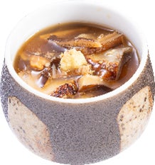 ほんのり上品な脂のりと旨みあるサーモンを“漬け”にすることで、さらに旨みを引き出しました。芳醇なかぼすと4種のキノコの風味、刻んだ国産長芋の食感など、様々な素材の美味しさがひとつになった一品です。