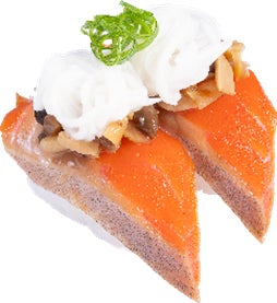 『サーモンの漬け~キノコと長芋の創作寿司~』二貫297円(税込)