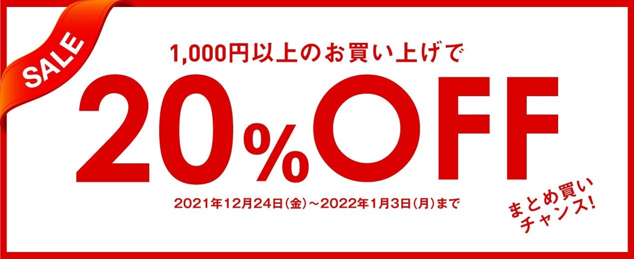 年末年始にかけて20%OFFでお買い求めいただけるセールを行っております。このセールでは、一度に1000円以上ご利用いただくと、決済時に合計額から20%割り引きをさせていただく大変お得なキャンペーンです。