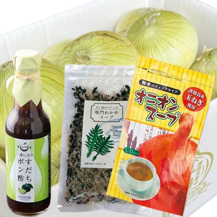 オンラインショップオープン記念として、淡路島新玉ねぎ、一番しぼりすだちポン酢、鳴門わかめスープ、淡路島オニオンスープを6月末まで期間限定の特別価格にて販売いたします。