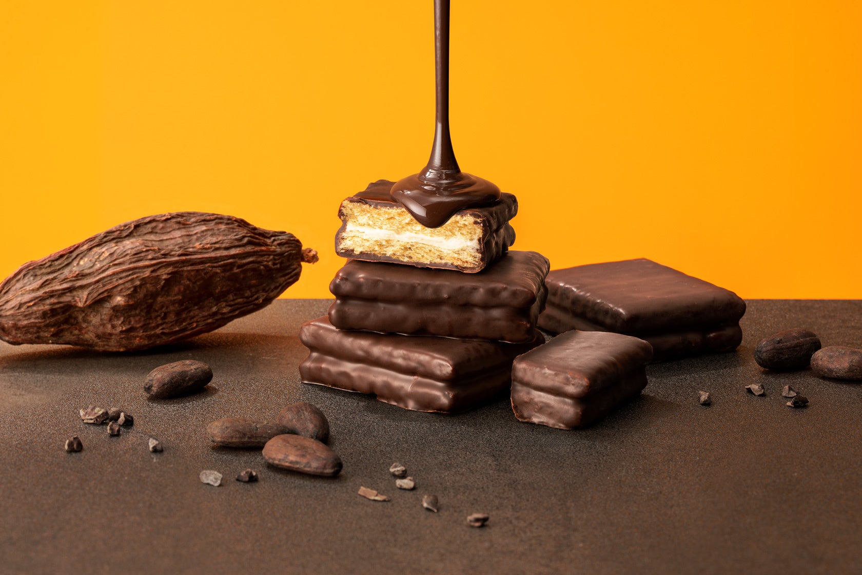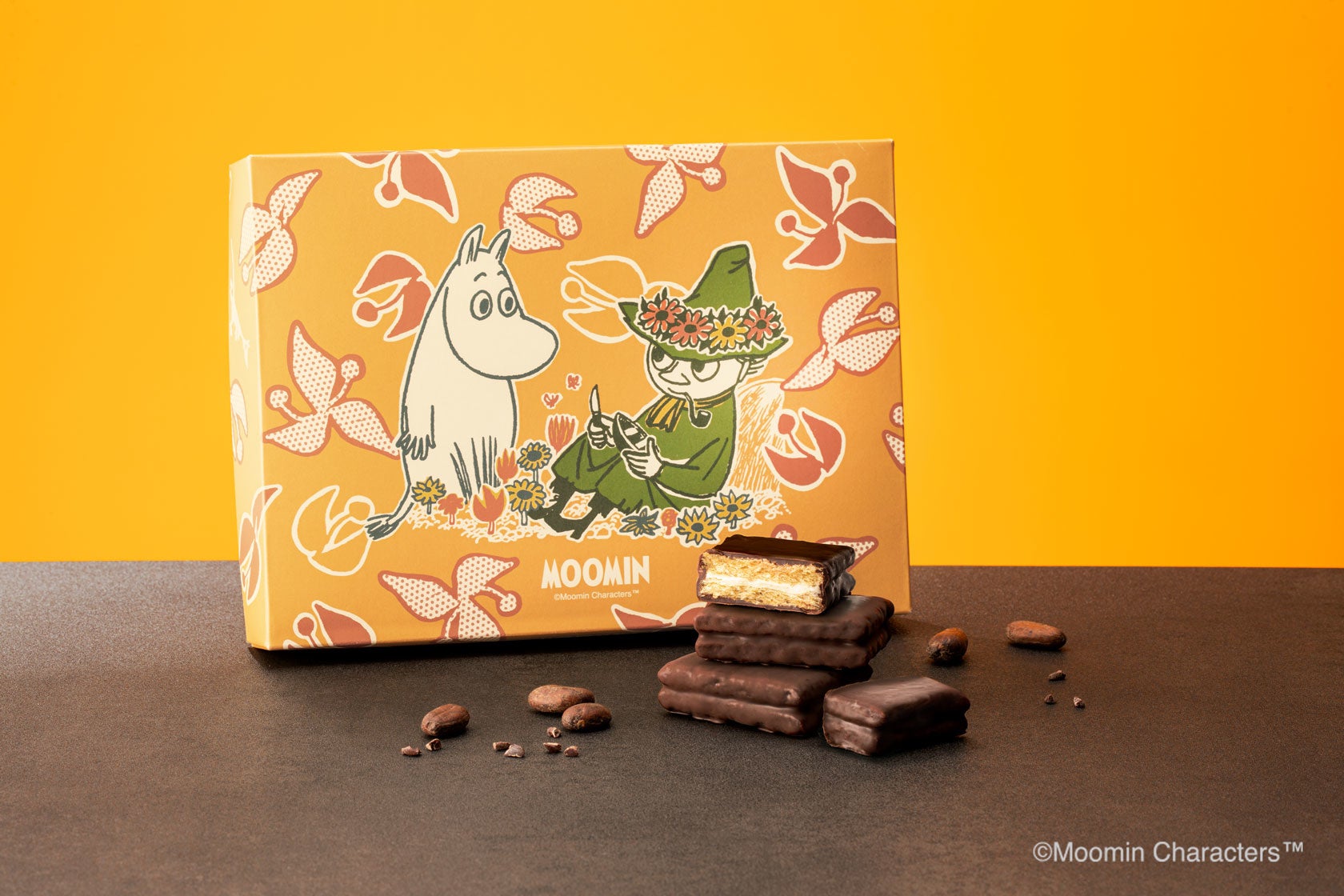 おいしさの秘密は、リッチな炭火焙煎でカカオ豆のコクと香りをた~っぷり引き出した“炭火ショコラ”。炭の炎で魔法をかけた自慢の美味しさで、ミルククリームサンドをまるごと包みこみました。サクッとかむと、コクたっぷりのショコラに芳醇なバターとミルキークリームが一気にとけあって感動級のおいしさに!コーヒー⼤好きなムーミンが、親友のスナフキンを誘って、お花畑でのんびりくつろいでいるようなキュートなパッケージもポイントです。