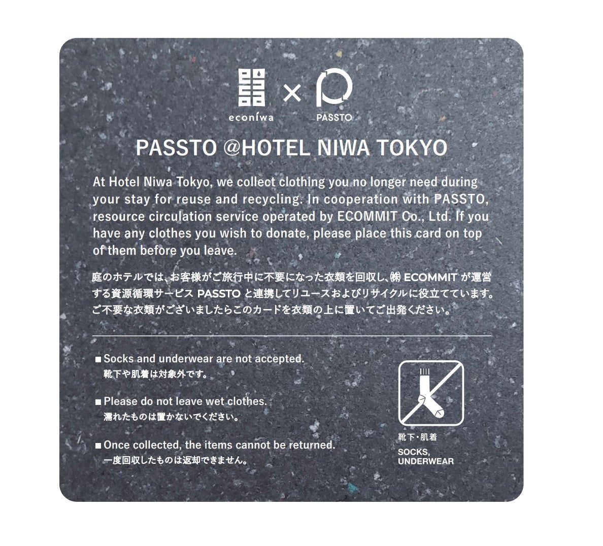 本協定締結により、循環型経済(サーキュラーエコノミー)・CO₂削減に資する取組みとして、商業施設などに不要となった衣類や雑貨類の回収専用ボックスの設置や、ホテル客室においてお客様が不要品に対し意思表示できるカードの設置を新たに開始することをお知らせいたします。