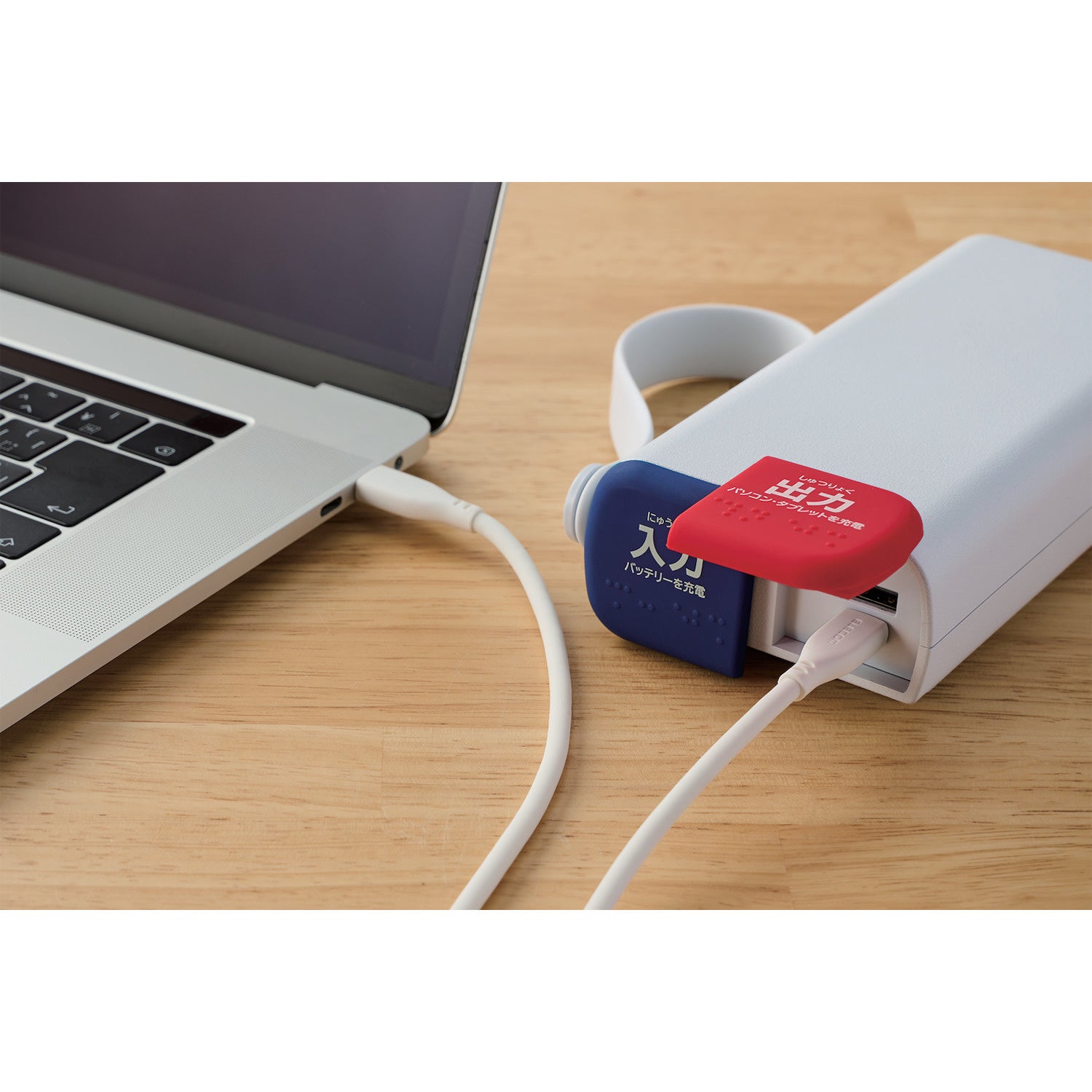 オンライン学習やリモートワーク時のパソコン充電に便利なリン酸鉄リチウムイオン電池搭載のモバイルバッテリーです。USB Power Deliveryに対応し、1,000回以上充電ができます。長寿命で、高い安全性を実現しました。さらに生活防水レベルのJIS保護等級IP44に相当する防水・防塵タイプで、フックにかけて使用・保管でき、場所を取らない点が特徴です。