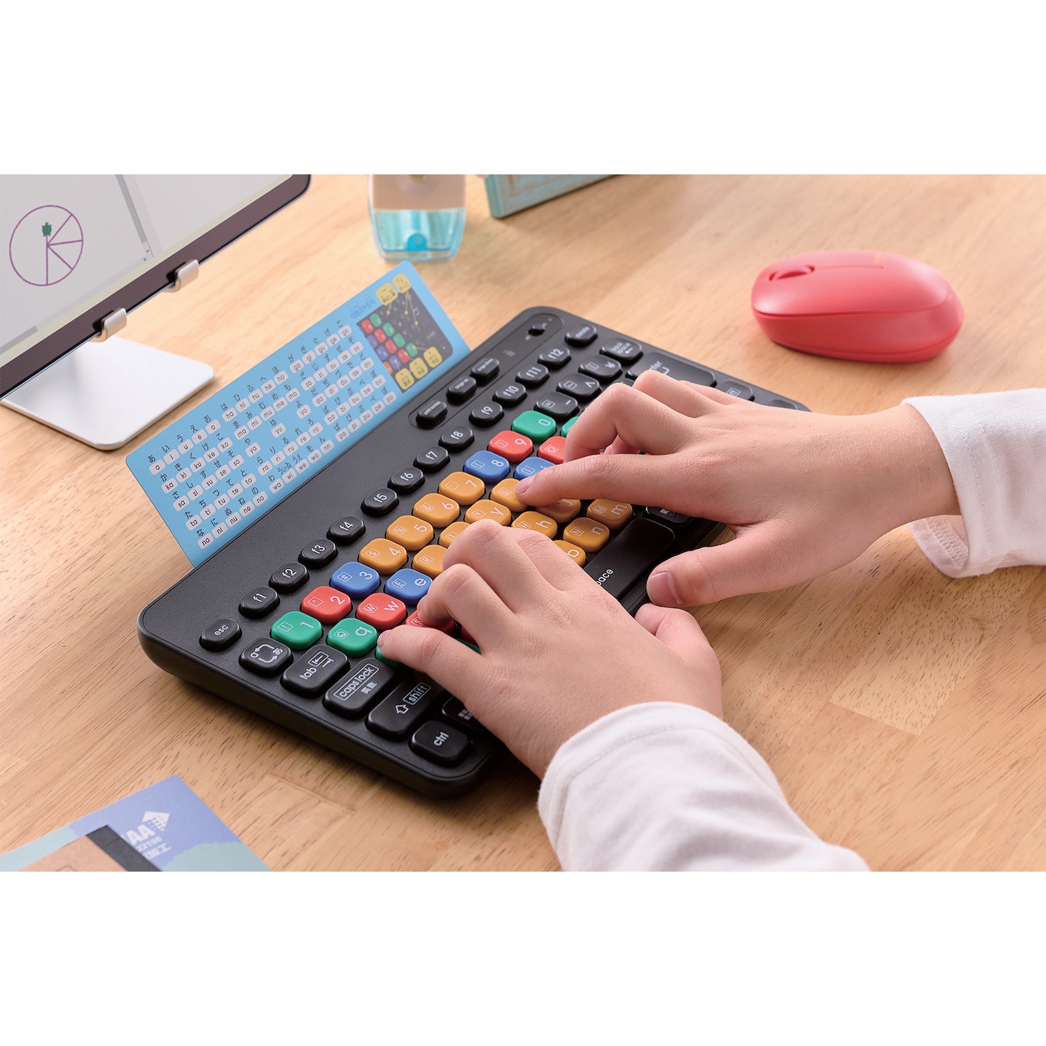 プログラミング教育が必修化され、教育現場でははじめてパソコンに触れる子どもたち、プログラミングを教える教師、家庭で子どもの学習を見守る保護者など、それぞれの立場でプログラミング学習に対する課題を抱えていました。そこで、教育現場を知る専門家と議論を重ね、一つひとつ解決し、子どもたちが学習を楽しく続けることができるようにデザインした"はじめての"キーボードです。
