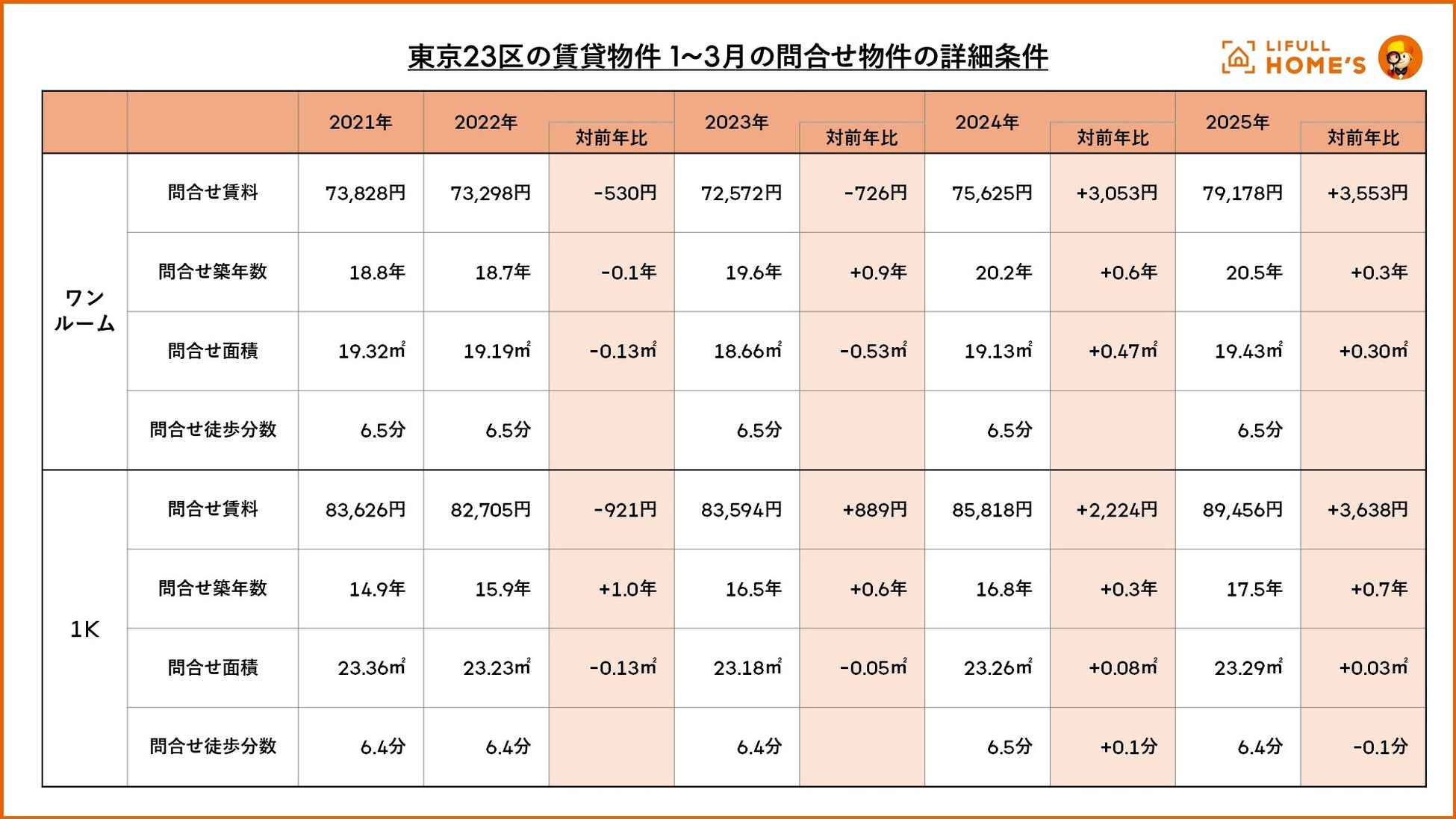 集計項目:LIFULL HOME'Sに掲載された賃貸物件で問合せがあった物件の問合せ件数、問合せ賃料(管理費込み)、問合せ面積、問合せ築年数、問合せ徒歩分数
