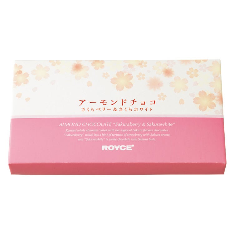 香ばしくローストしたアーモンドを、桜風味のチョコレートでコーティング。桜が香るチョコレートにストロベリーの酸味がほんのり効いた[さくらベリー]と、ホワイトチョコレートに桜の味わいをプラスした[さくらホワイト]の2つのおいしさを楽しめます。