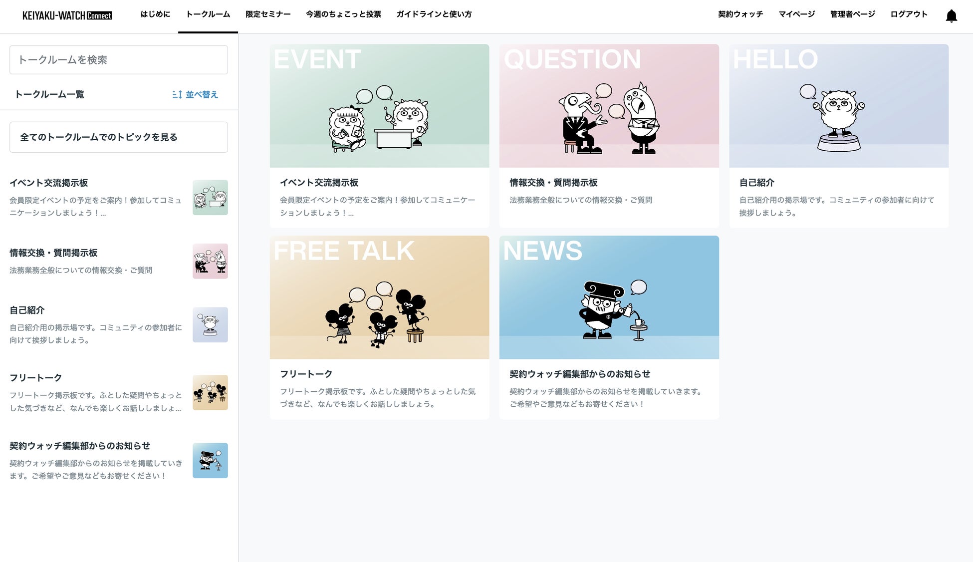 会員同士のつながりを促進するための掲示板やフリートーク欄などを設けており、気軽に会員がトークルームに入室して、あらゆる情報の共有をすることが可能です。