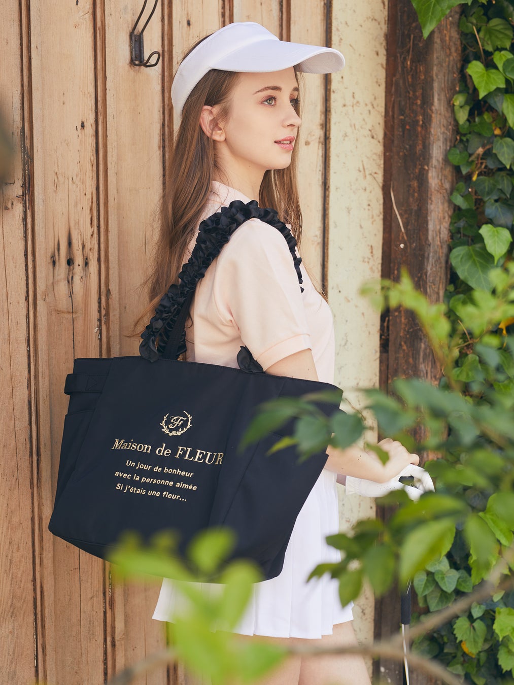バッグは、ラウンド用とロッカー用の2種類をご用意。ショルダー紐付きのラウンド用バッグには、Maison de FLEURのアイコンであるリボンをサイドに施しました。豊富なアウトポケットのデザインで、日焼け止めやメイク直しなど、コース上でも必要となる小物もたっぷりと収納いただけます。