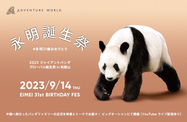 パンダ繁育研究基地、中国駐大阪観光代表処と共催で、和歌山・白浜のジャイアントパンダの誕生日を祝う2023ジャイアントパンダグローバル誕生祭 in 和歌山 永明31歳の誕生祭を開催いたします。誕生祭では、今年2月に中国へ旅立った「永明」の31歳の誕生日を祝し、成都ジャイアントパンダ繁育研究基地から来賓をお迎えし、パンダの故郷である中国四川省の様子や、中国へ旅立ったパンダファミリーの近況を映像とトークでお届けいたします。