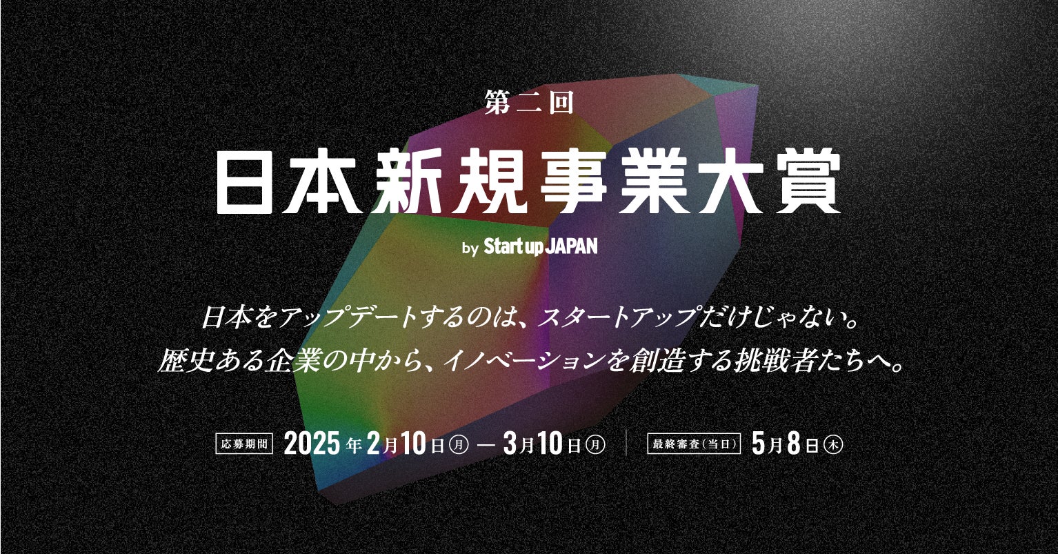 日本新規事業大賞は、企業から生まれる新規事業に光を当て、事業会社内で挑戦する起業家マインドを持つ人々を応援するアワードです。企業内新規事業の成功事例を表彰し、挑戦者同士のつながりを生み出すことを目指しています。最終審査および審査結果の発表は、5月8日(木)に東京ビッグサイトで開催する日本最大級のスタートアップ展示会「Startup JAPAN 2025」の中で行います。
