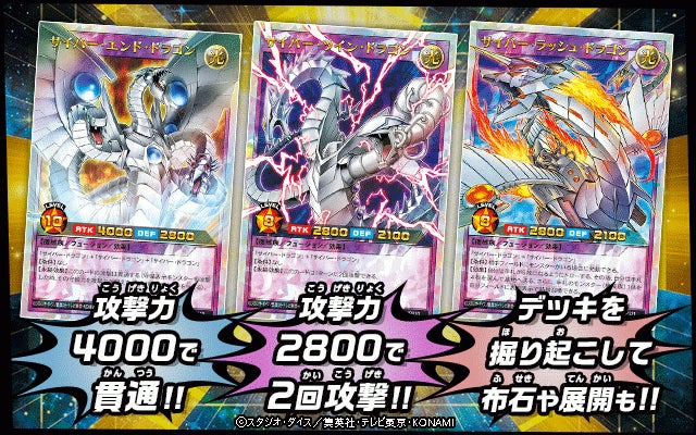 「サイバー・ドラゴン」を素材としてフュージョン召喚するフュージョンモンスターをはじめ多数の関連カードが登場!レジェンドカードとして登場する「パワー・ボンド」でフュージョン召喚を決めれば2倍の攻撃力で一気に勝利をつかめることも!