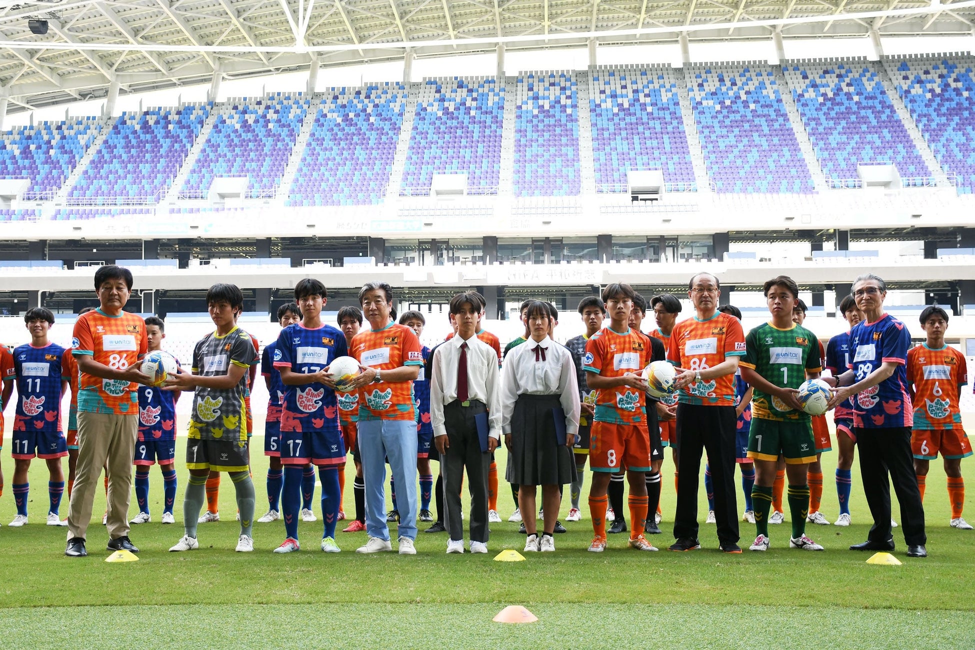 両県の平和のシンボルを配置したピースユニフォームをヒュンメルが担当