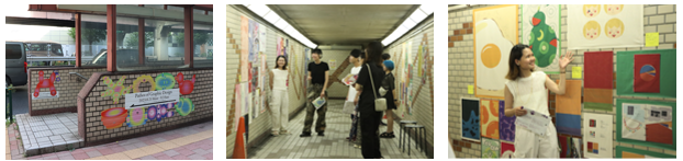 授業終了後には、出来上がった作品が一同に会する作品展示会を、日本橋内にある地下歩道で開催し、多くの方にご覧いただきました。地下歩道の清掃や作品展示など、会場づくりから生徒自身で行い、展示会期中は来場いただいた方々と作り手である10代の生徒との交流が生まれたこともあり、生徒が街とのつながりを意識するきっかけになりました。