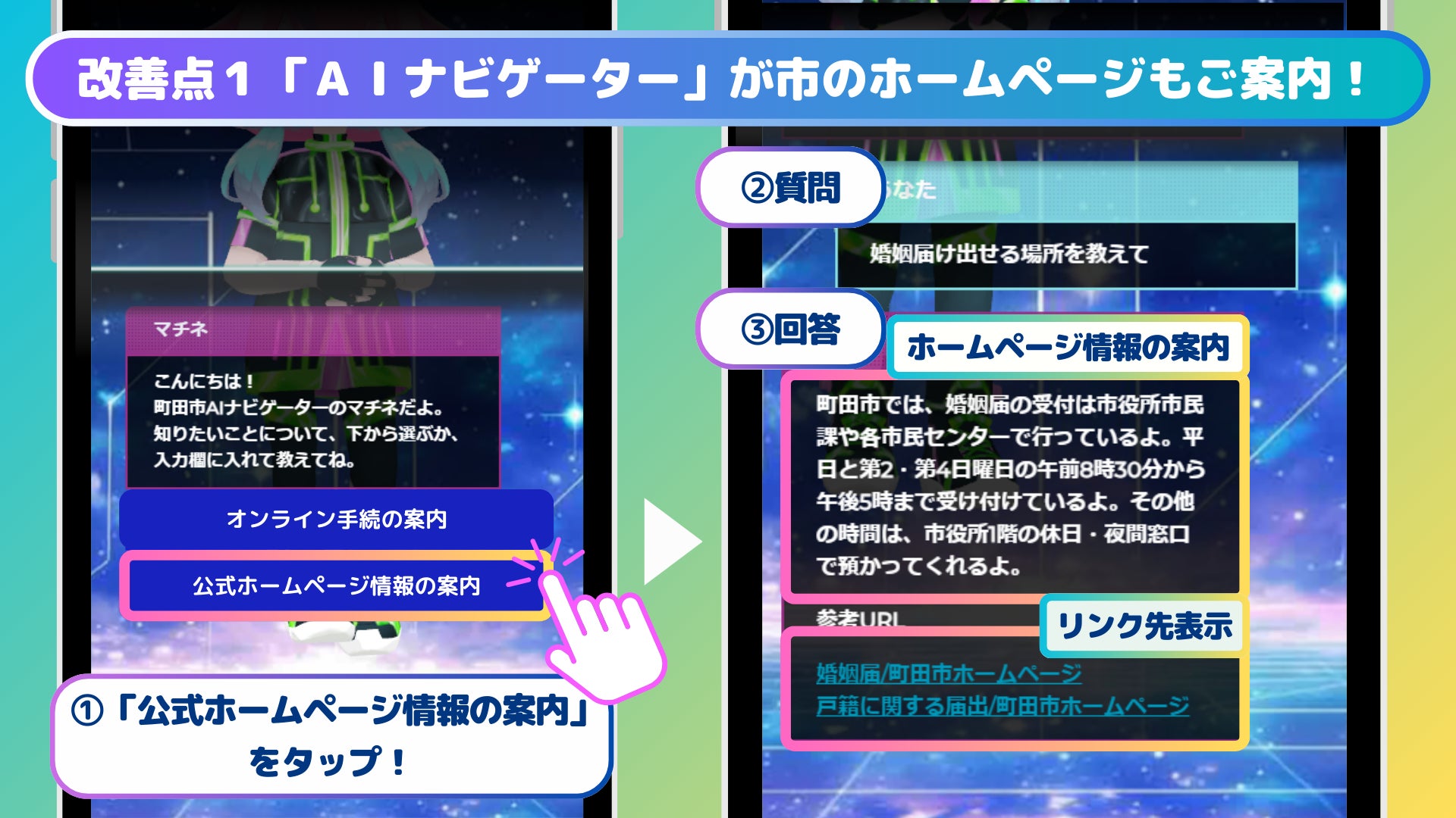 改善点1 「AIナビゲーター」が市のホームページもご案内!