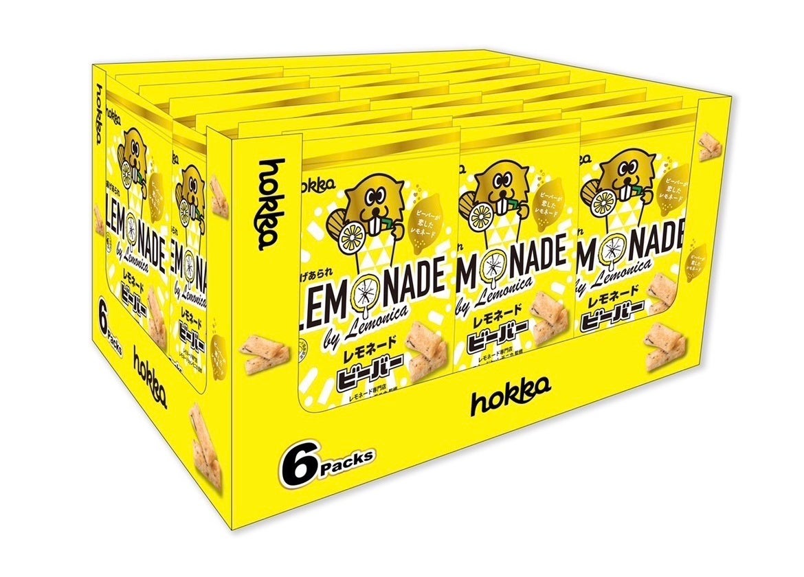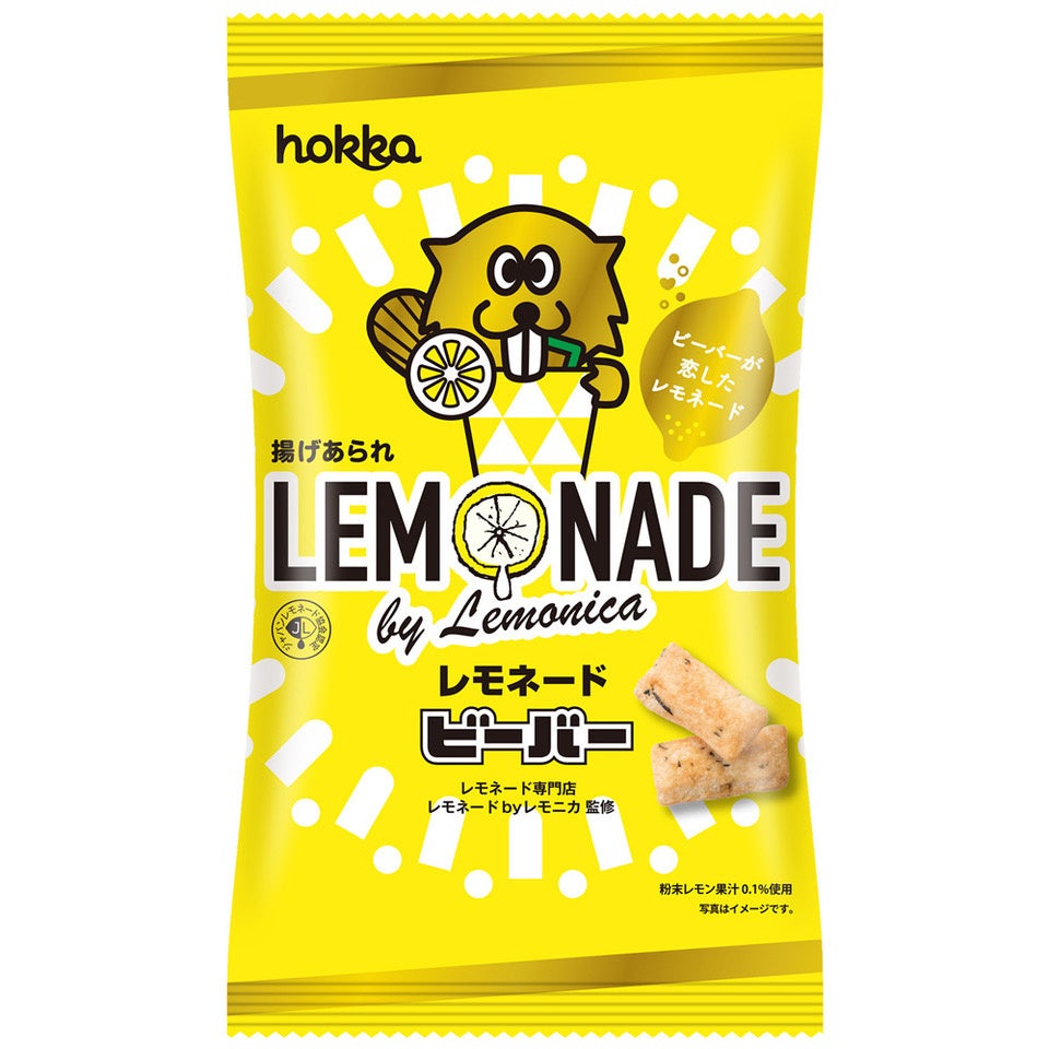 2022年4月、レモニカ監修のもと、“ちょっとあまずっぱいレモネードフレーバー”の「レモネードビーバー」が生み出され、発売されました。シリーズ初の甘みが加わった味。酸味・甘味・塩気の3つを特に重視し、これらがバランスよく感じられるように何度も試作が繰り返された同商品は、発売後その販売数が当初の予測を大幅に上回り、1ヶ月で限定期間内予測販売数を達成。全国地域の米菓新商品部門で売り上げ第1位を獲得しました。