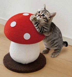 コメリの爪とぎの新作!キノコに乗ったり飛びついたり!愛猫のかわいい姿が見られる爪とぎ「Pet ami猫の爪とぎ キノコ」
