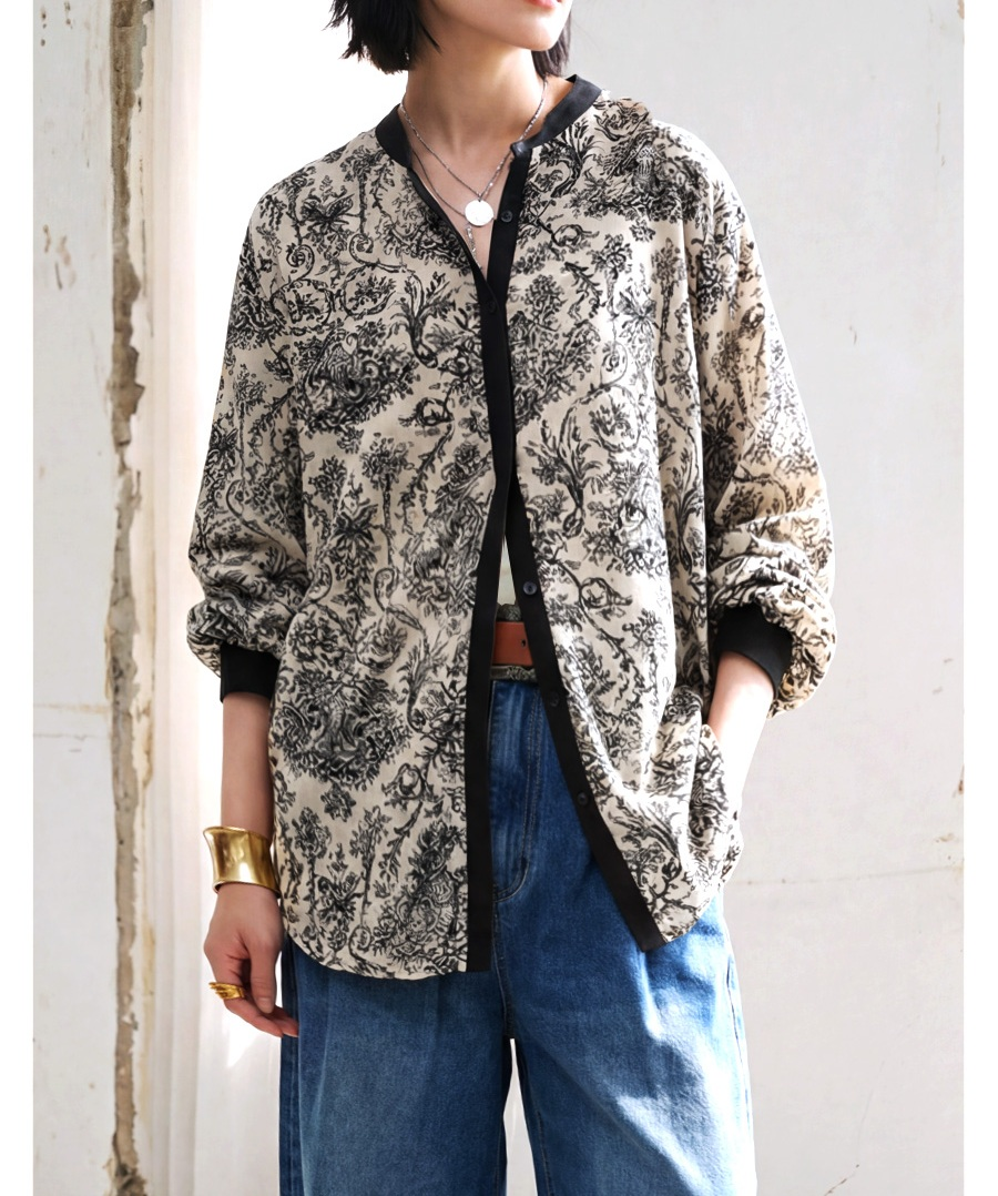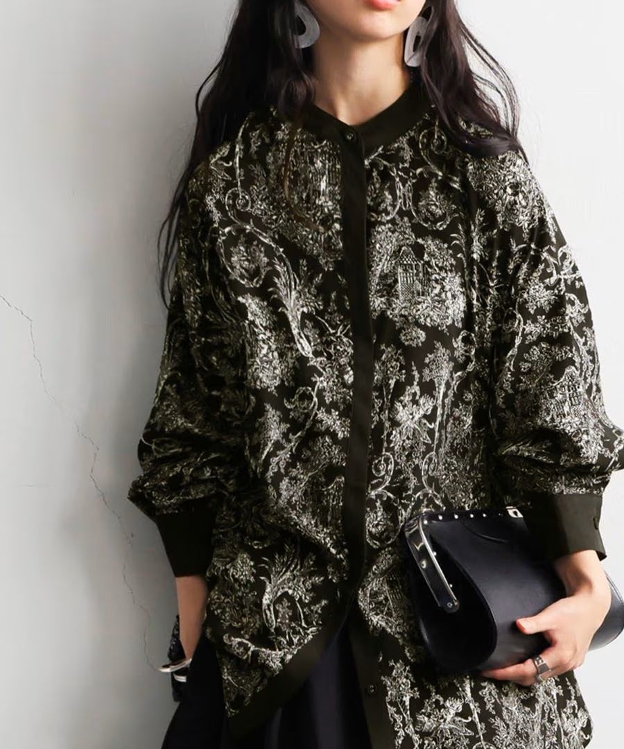 纏うだけで華やぐ。トワルドジュイ柄のバイカラーシャツ