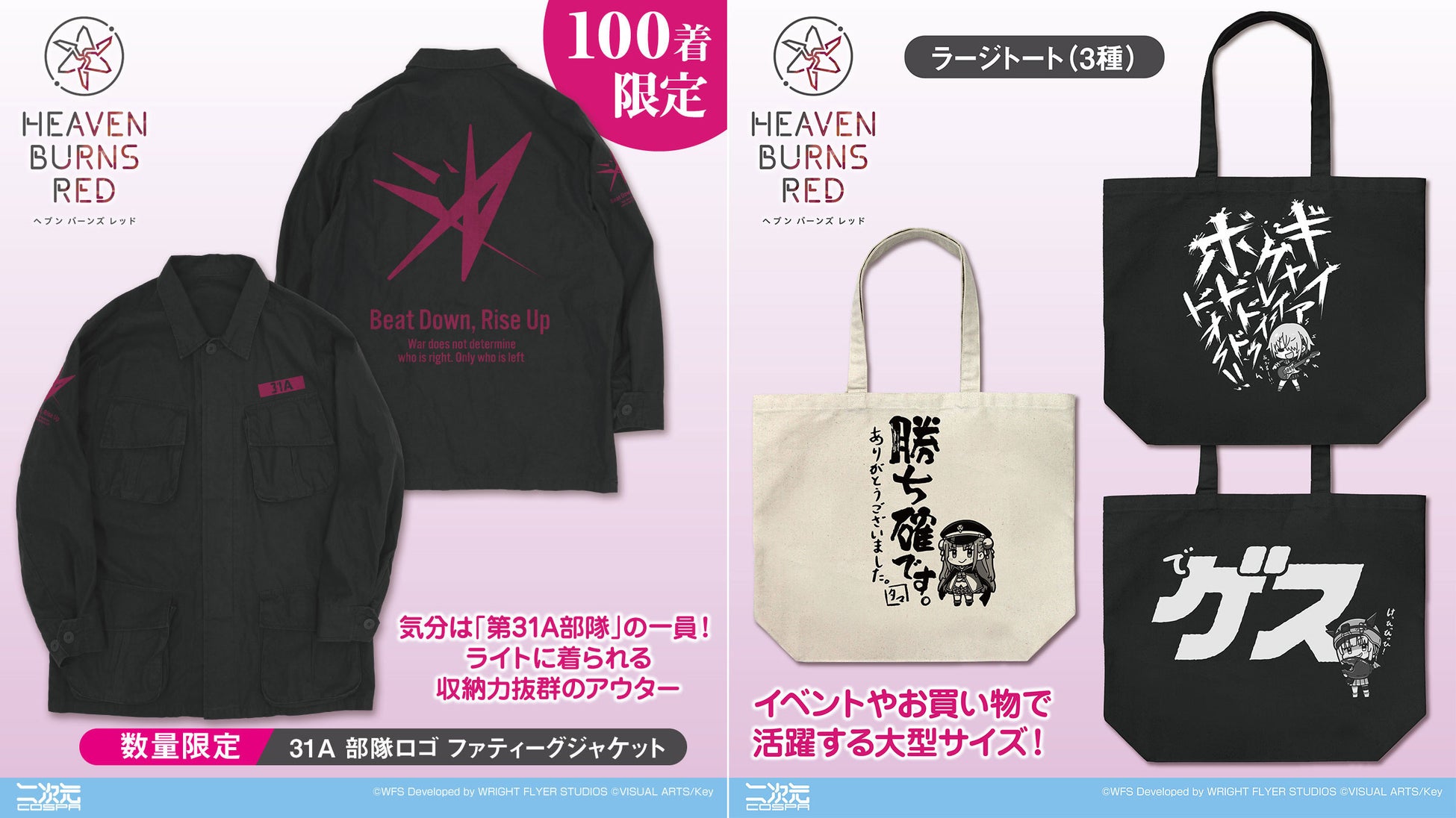 【数量限定/サイズ合計100着】『ヘブンバーンズレッド』31A 部隊ロゴ ファティーグジャケットが登場!「ラージトート」など新グッズはコミケ103先行販売も【株式会社コスパ】