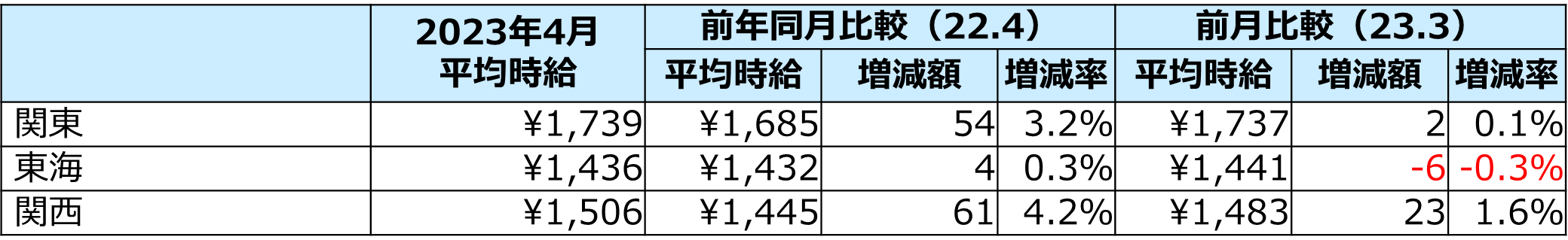 4月度のエリア別平均時給は、全エリアで前年同月比プラスを記録。