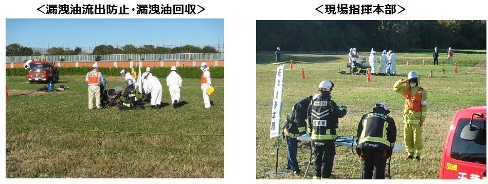 成田空港航空燃料パイプライン事業用施設の航空燃料流出事故発生時において、千葉港頭石油ターミナル、四街道石油ターミナル、空港石油ターミナルの各自衛消防隊が一体となり、防災用資機材を活用して、その状況に応じた初期活動を迅速かつ正確に実行し得るように習熟するとともに、自治体消防との連携を強化しつつ防災意識の高揚を図り、人的及び物的被害を最小限に留めることを目的に実施するものです。