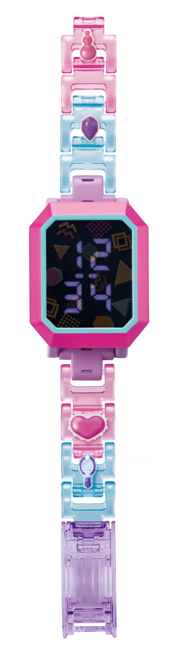 本商品は、オリジナルのデジタルウォッチが作れるアイテムです。好きなベルトパーツ、フレーム、デザインフィルム、デコレーションピン、留め具を選び、時計本体につけて完成です。各パーツの取り外しや組換えも簡単にでき、その日のファッションに合わせて自分だけのアレンジが楽しめます。各パーツの組み合わせは10,000通り以上!ベルトパーツ、デコレーションピンを使って、ブレスレットを作ることも出来き、アナログシリーズのベルトとデコパーツも使えます。