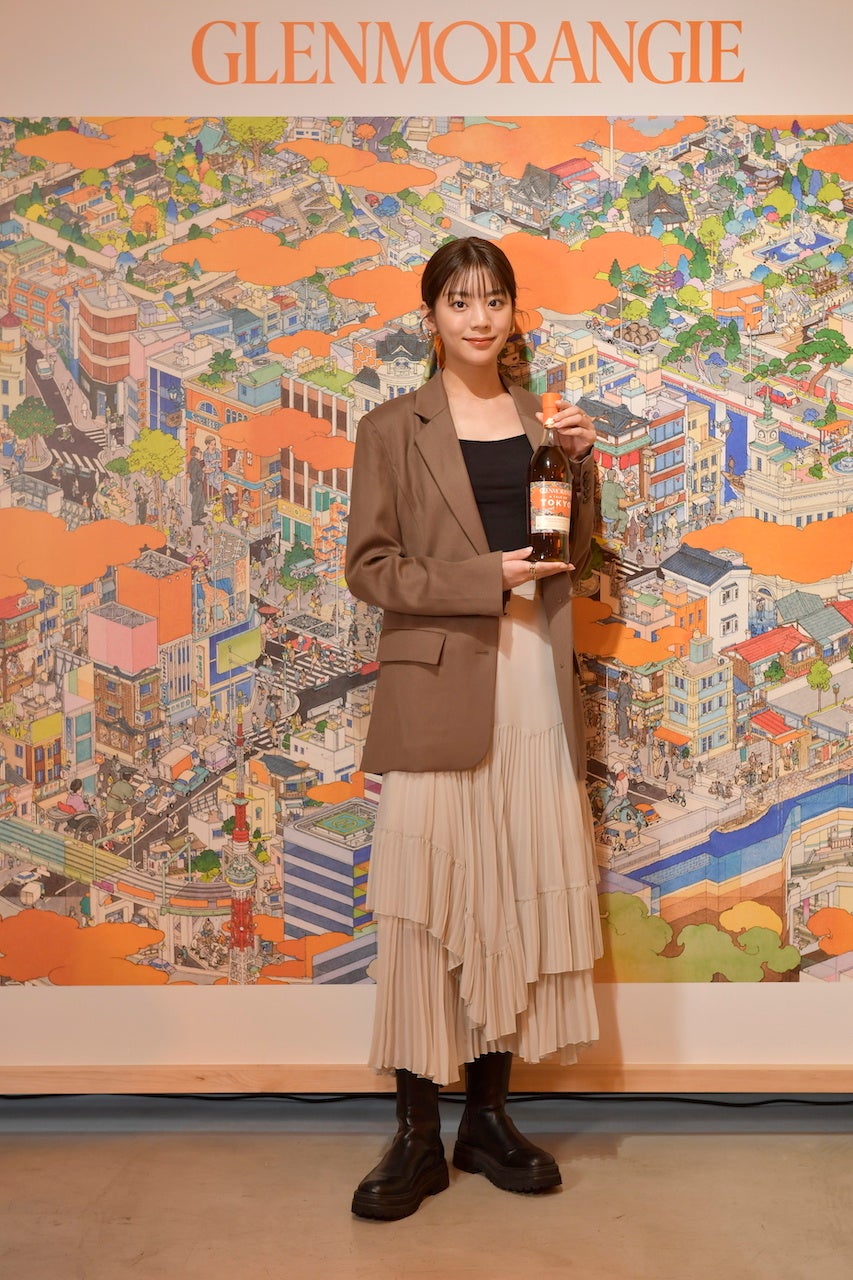 今日のイベントは、東京のお祭りのような提灯や屋台の雰囲気を楽しめる空間でした。オレンジから連想できる「夕日」を見ながら友人とも乾杯をしたいです。父の日に「グレンモーレンジィ オリジナル」を贈り、ビデオ通話を通して父と乾杯したのですが、離れていても、グレンモーレンジィのウイスキーと共に華やかな気持ちを父とシェアできた気がします。限定のボトルデザインも、楽しい東京が表現されていて、とても気に入りました。