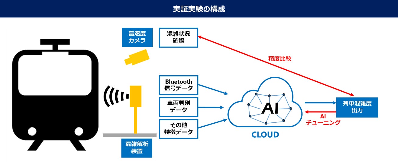 本実証実験は、東京工業大学環境・社会理工学院の辻本研究室が開発した「列車内の混雑度解析技術」(特許出願中)の精度を検証するもので、列車内の混雑情報を可視化して乗車前のお客さまにリアルタイムで提供することにより、混雑度が低い車両への乗車を促し、できるだけ混雑を避けたいというお客さまのニーズに応えることを目指しております。