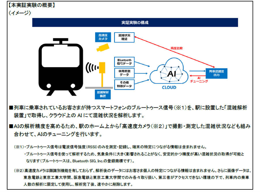 東急電鉄株式会社(本社:東京都渋谷区、取締役社長:渡邊 功、以下「東急電鉄」)ならびに阪急電鉄株式会社(本社:大阪市北区、代表取締役社長:杉山健博、以下「阪急電鉄」)は、国立大学法人東京工業大学(本部:東京都目黒区、学長:益 一哉、以下「東京工業大学」)と協働して、列車内の混雑状況の可視化に関する実証実験(以下「本実証実験」)を2022年1月より実施します。
