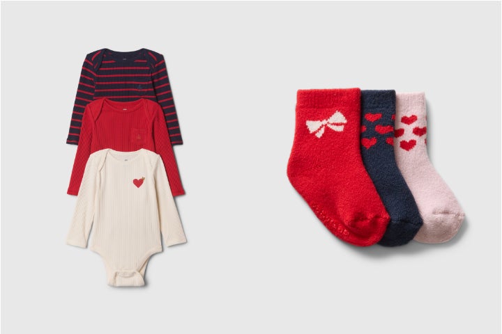 ベビーからは、カシミヤのように柔らかく、ふんわりと暖かいCashsoft素材のカーディガンや、LOVEとドット柄モチーフが特徴のスウェットセットアップ、Gapのアイコンキャラクター”ブラナンベア”がハートの後ろから覗いている遊び心あるデザインが魅力なリブ素材の3枚セットボディスーツなどが並びます。ホリデーギフトにも最適な3足セットのソックスにも注目です。