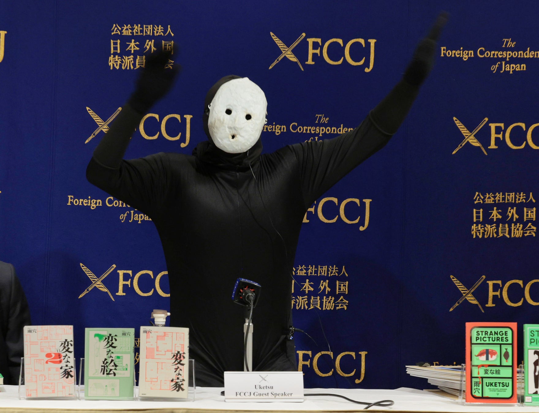 日本外国特派員協会での会見に、白い仮面に黒タイツという普段の格好で登場した雨穴氏は、「ナイストゥミーチュー、マイネームイズウケツ」とあいさつすると、「せっかくなので本日、英語でスピーチをしたいと思います」と、20分に及ぶ英語でのスピーチを行った。