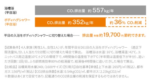 平日の入浴をボディハグシャワーに切り替えた場合、排出量年間約19,700円節約できます。