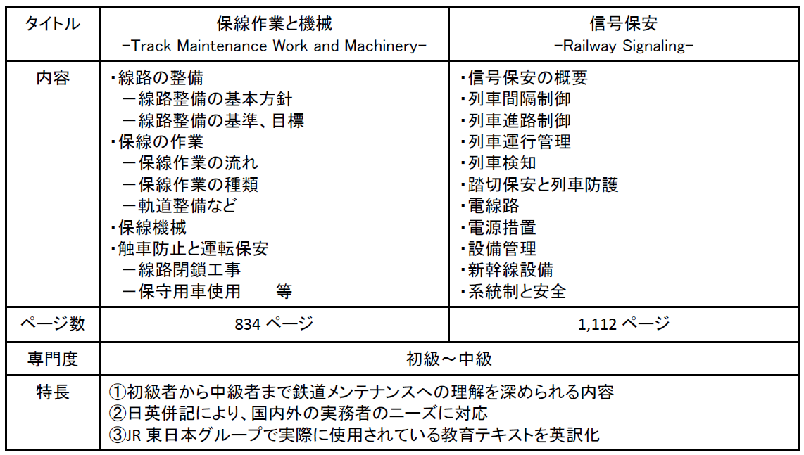 鉄道メンテナンスに関する英語併記の教育テキストをJRE MALLで発売!~日本の鉄道技術の海外展開に貢献します~