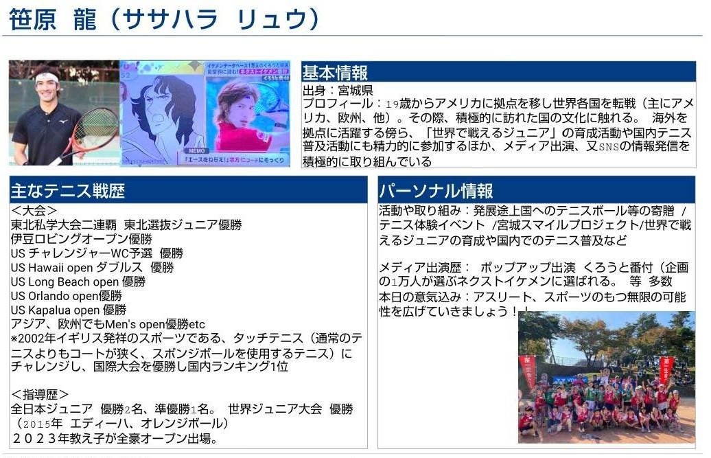 プロテニスプレーヤー笹原龍選手、株式会社スポーツの未来設立準備室において「エンターテイメント・スポーツオフィサー(ESO)」として就任 https://prtimes.jp/main/html/rd/p/000000564.000018590.html