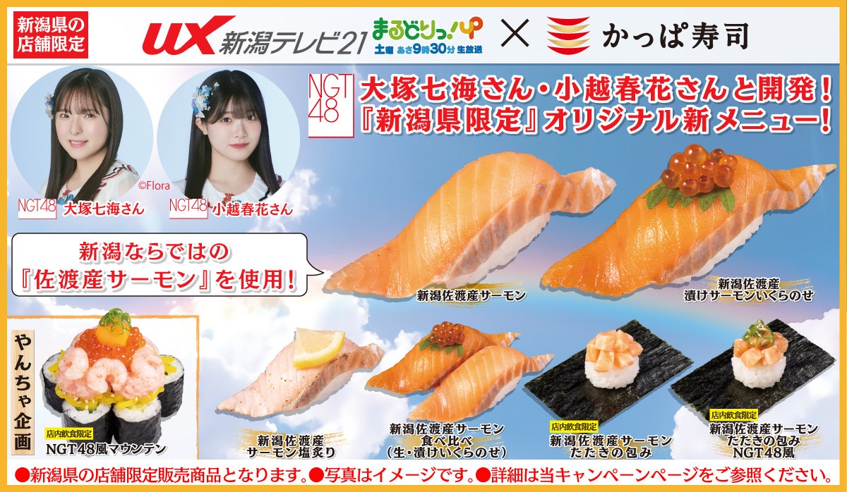 UX新潟テレビ21「まるどりっ!UP」×かっぱ寿司 NGT48大塚七海さん・小越春花さんと開発 かっぱ寿司『佐渡産サーモンを使った新潟県限定寿司』6商品他販売