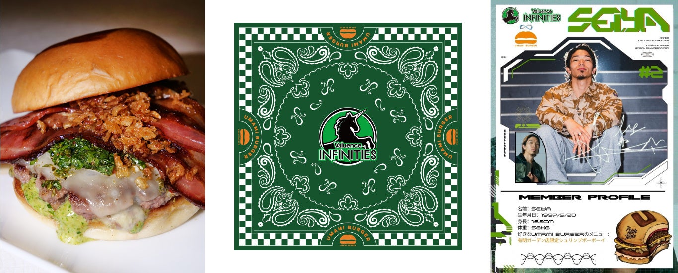 バリュエンスジャパン株式会社(本社:東京都港区、代表取締役:嵜本 晋輔)が運営するプロダンスチーム「Valuence INFINITIES(バリュエンス インフィニティーズ)」と、株式会社UMAMI BURGER JAPAN(本社:東京都渋谷区、代表取締役:海保 達洋)が展開する人気ハンバーガーショップ「UMAMI BURGER」が初めてコラボレーションした「Valuence INFINITIES/バリュエンス インフィニティーズ」を、UMAMI BURGER有明ガーデン店にて販売します。D.LEAGUE 24-25 CHAMPIONSHIP開催日である6月19日(木)から期間限定販売で、ファン必見のオリジナルグッズ付きセットが登場。イベント期間だけの特別な体験をお届けします。