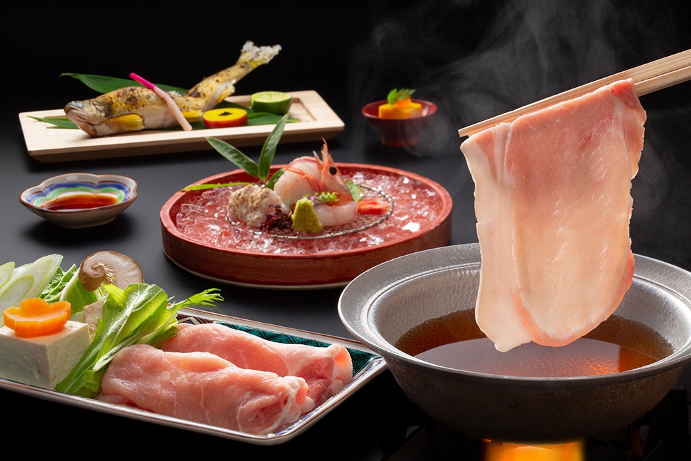 甘海老や輪島ふぐ、のどぐろ、ズワイ蟹、寒ブリなどの海の幸、五郎島金時や金時草などの加賀野菜は、加賀じわもん会席やライブキッチンから届く揚げたて天ぷら自慢の会席料理でお召し上がりいただけます。