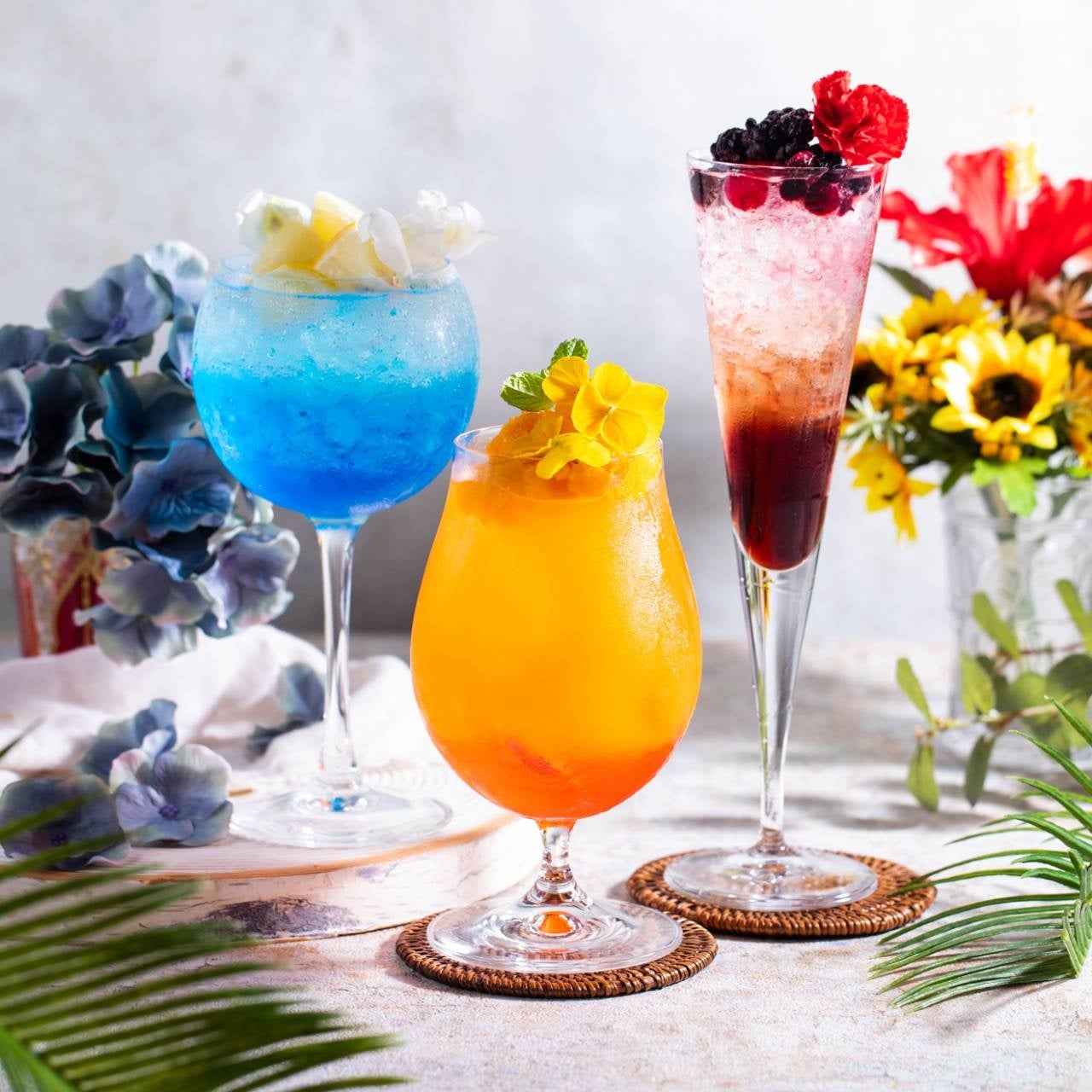 セットの飲み放題ではスパークリングワインやカフェはもちろん、トロピカルノンアルコールカクテル9種も提供。